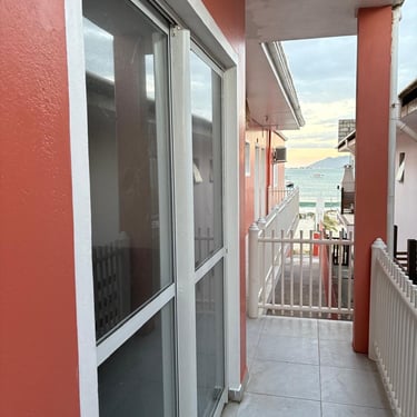 Amplo apartamento localizado no primeiro andar na parte da frente, com churrasqueira, cozinha/sala (fogão, geladeira, microondas, pia, armários, mesa, 1 TV, 1 sofá, 1 tanque de lavar roupas), 3 quartos com ar-condicionado (sendo o quarto 1 com uma cama de casal e 1 sofá, quarto 2 com um beliche e 1 cama de casal e o quarto 3 com 2 camas de solteiro), 1 banheiro, e sacada com vista mar. Internet Wi-Fi.